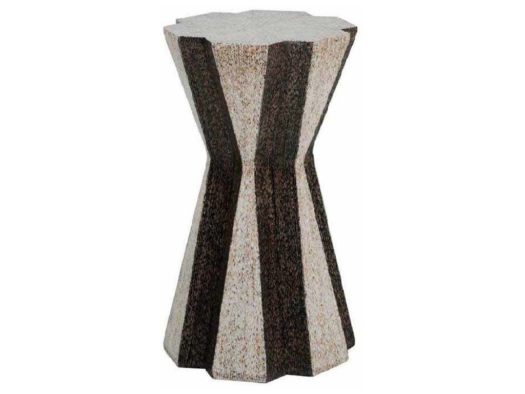 Product Description: Gabby Home SCH-163265 Dorina Side Table - A brown-black and natural-white combination of this unique natural grass material cover the fascinating form of the Dorina Side Table. An overall hourglass shape is cut and molded into geometric facets and then coated in a natural turnsole reed and infused with white and brown resin. Turnsole is a natural material and may present subtle differences in color or texture.