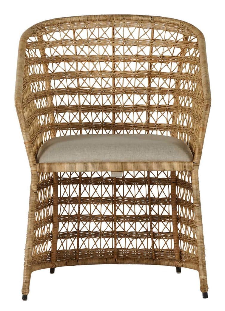 Product Description: Gabby Home SCH-166335 Libby Natural Rattan Metal Sloping Arms Dining Chair - Dark Gray Vienna Custard - The Libby Dining Chair showcases a barrel design with a rounded back and gently sloping arms, handwoven from natural rattan to create a relaxed, coastal feel that suits a variety of spaces. Its linen-upholstered seat provides soft, comfortable seating, making it ideal for dining rooms, breakfast nooks, or covered outdoor areas. Combining casual elegance with superior comfort, the Libby Dining Chair elevates any dining experience.