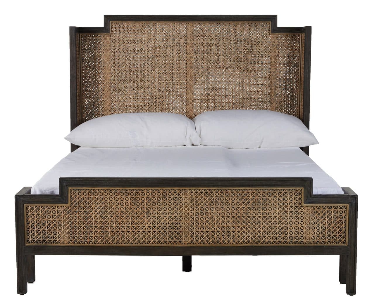 Gabby Home SCH-169345 Camille Natural Rattan Wood Transitional Cane Bed – Queen, Brown