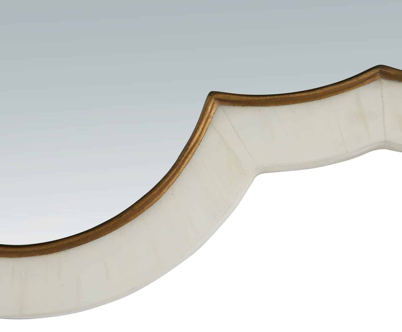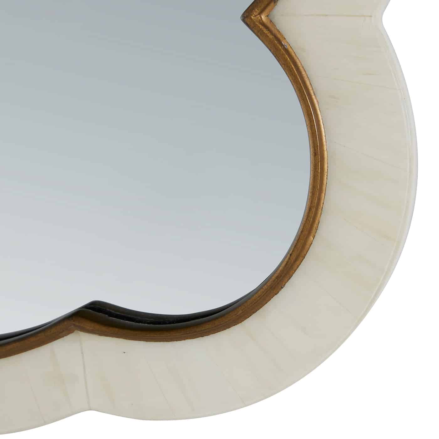 Product Description: Gabby Home SCH-175040 Rianna Cloud Accent Mirror - Antique Brass Trim - The Rianna Mirror is a striking and eclectic statement piece, featuring a cloud-shaped frame inlaid with faux white horn and accented with an antique brass trim. Its flowing, curvy design brings both whimsy and elegance, adding personality to any space. Perfect for entryways, living rooms, or bedrooms, the Rianna Mirror elevates your décor with its unique style, while its quality craftsmanship and distinctive materials make it a standout addition to any home.