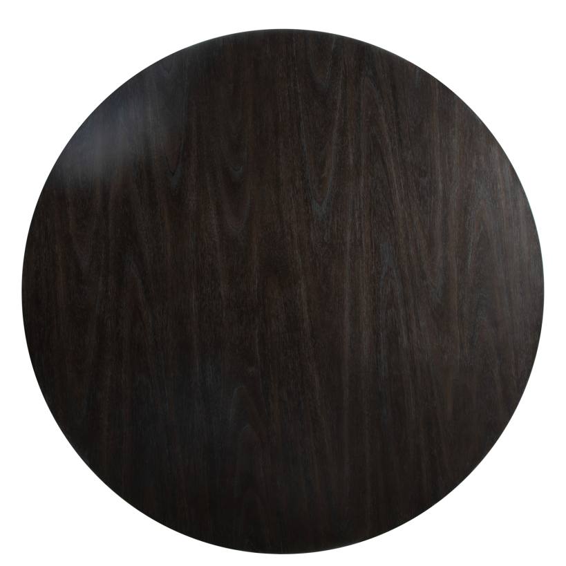 Product Description: Gabby Home SCH-175428 Teva Dining Table - The Teva Dining Table is a striking piece that blends artistic contours with natural elegance, capable of seating up to six people comfortably. Crafted of mindi wood and finished in a rich Cerused Forest Black, this table features a beautifully textured round top that highlights the intricate wood grain. The standout element is its sculptural pedestal base, which showcases a series of gracefully curved layers, adding a unique and artistic touch to your dining space. This table not only provides a functional dining surface but also serves as a captivating centerpiece for any modern or transitional decor.