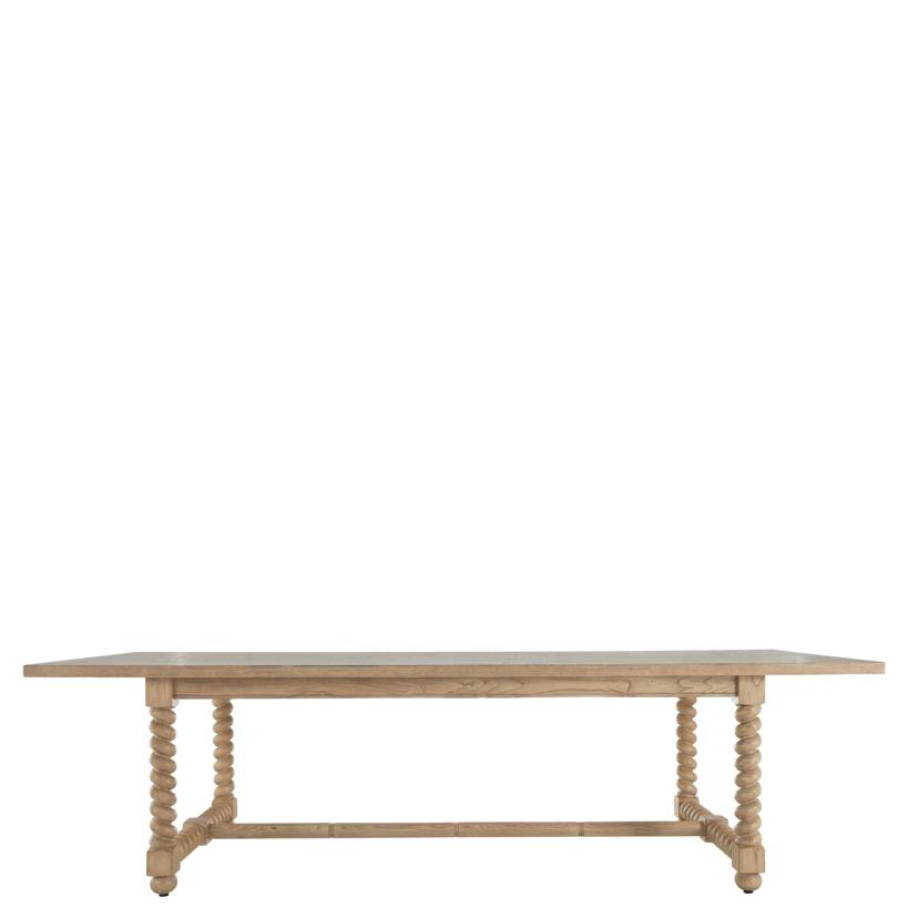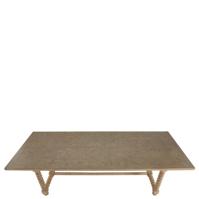 Product Description: Gabby Home SCH-175434 Ferdinand Dining Table Eighty Four Inches - The Ferdinand Dining Table 84 inches draws inspiration from French antique farm dining tables, beautifully blending vintage charm with modern practicality. It honors classic design elements, including the light blonde hue, parqueted veneer tabletop, and traditional structure, while seamlessly fitting contemporary standards. Crafted from Sungai wood and oak veneer, this table showcases intricate wood grain patterns and a meticulously crafted surface. With its generous dining space, it's perfect for gatherings of up to 6 people and meals with family and friends. Its solid construction and stylish finish make it a standout piece in any dining area, offering both functionality and aesthetic appeal.