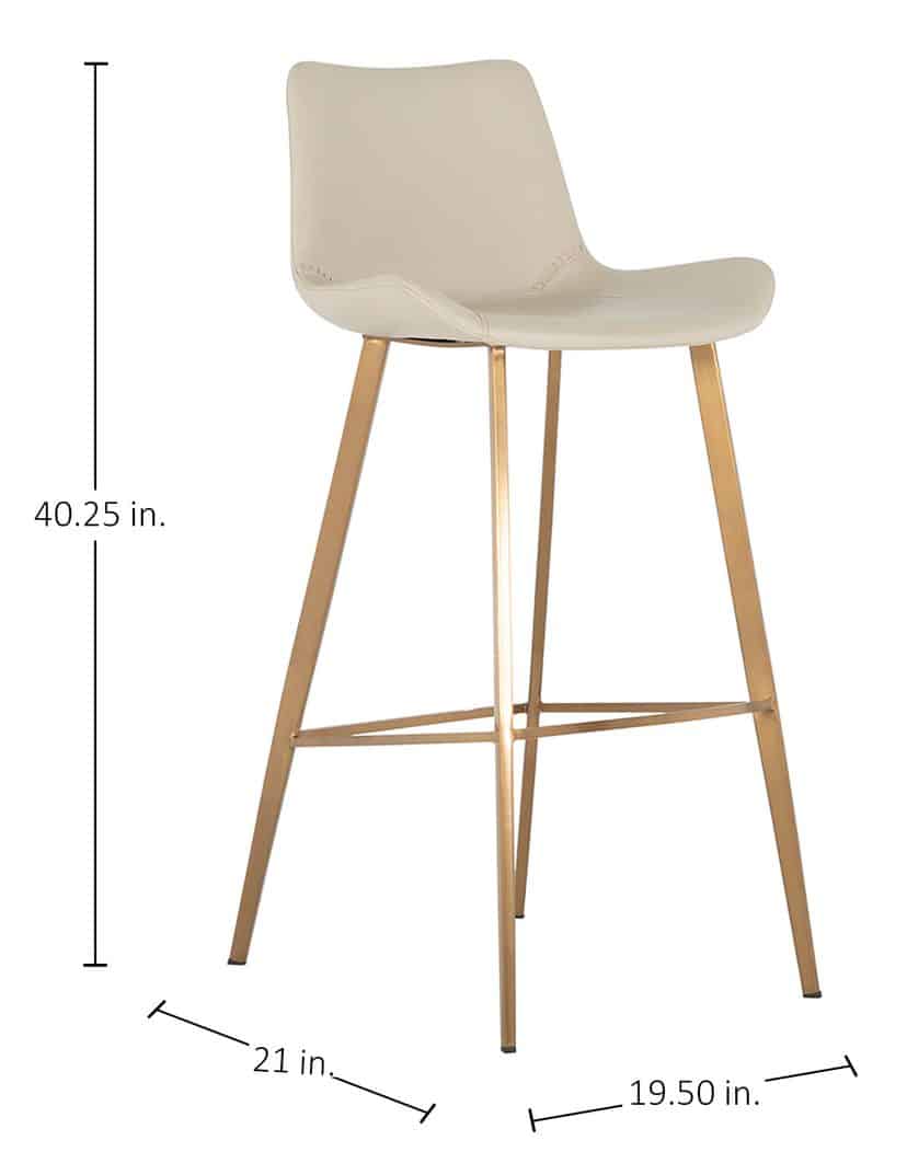 Product Description: Gabby Home SCH-175590 Hines Faux Leather Stainless Steel Bar Stool - White Gold - The Hines Bar Height Stool is both stylish and comfortable, ideal for kitchens or bar areas. Upholstered in sleek white faux leather, it delivers a sophisticated, easy-to-care-for finish. Its iron legs, finished in stainless gold, add a modern, elegant touch. Designed for ergonomic comfort, the stool is perfect for long periods of use. Durable and versatile, the Hines Bar Height Stool suits a range of interior styles, from contemporary to industrial chic, and is also available in a dark brown option.