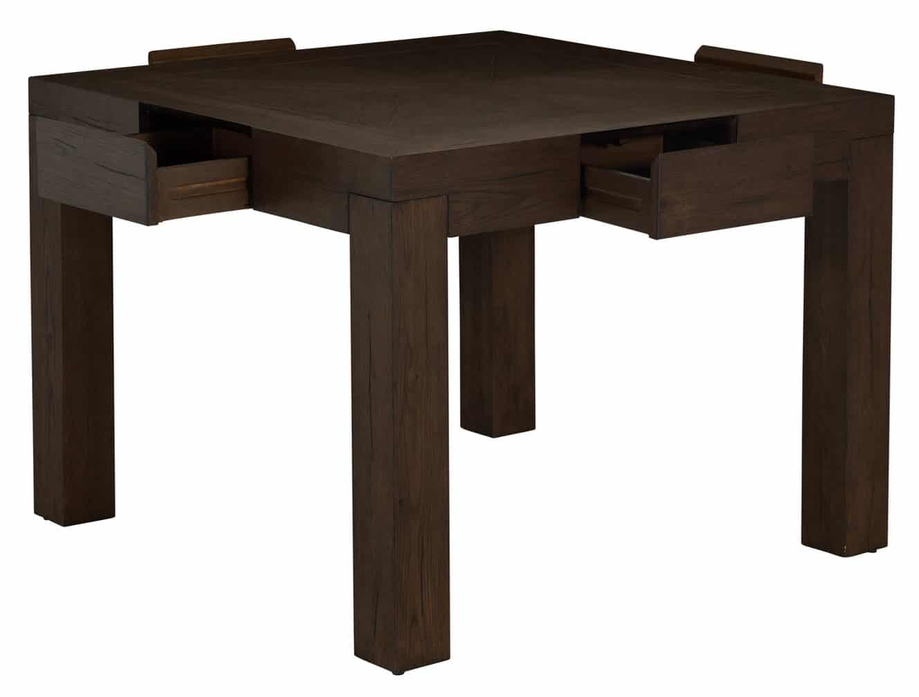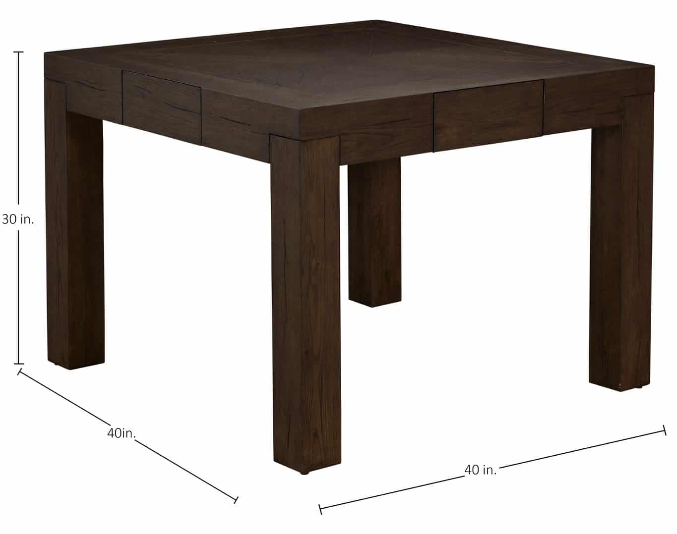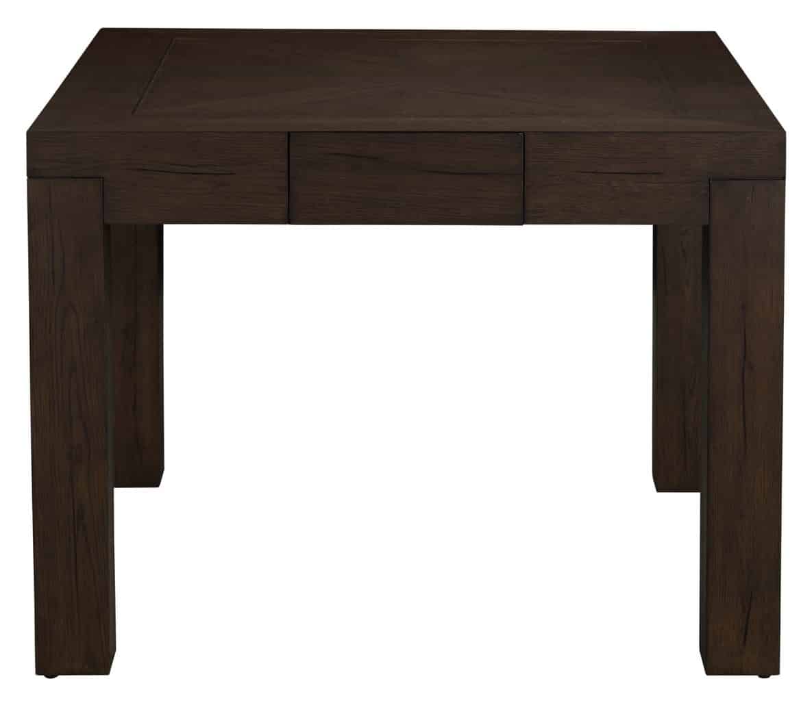 Product Description: Gabby Home SCH-175971 Highland Oak Square Legged Dining Table - Dusk - The Highland Square Dining Table in Dusk blends contemporary design with enduring natural materials for a sophisticated, grounded look. Crafted from rustic oak in a deep Dusk finish, it features clean, architectural lines accented with brushed bronze for subtle contrast. The tabletop highlights a unique inlaid wood pattern, showcasing the oak’s natural beauty. Four discreetly integrated drawers, lined with dark brown top-grain leather, provide practical storage for dining essentials or games. With its rich finish and refined details, the Highland Square Table in Dusk brings warmth and elegance to any dining or multipurpose space.