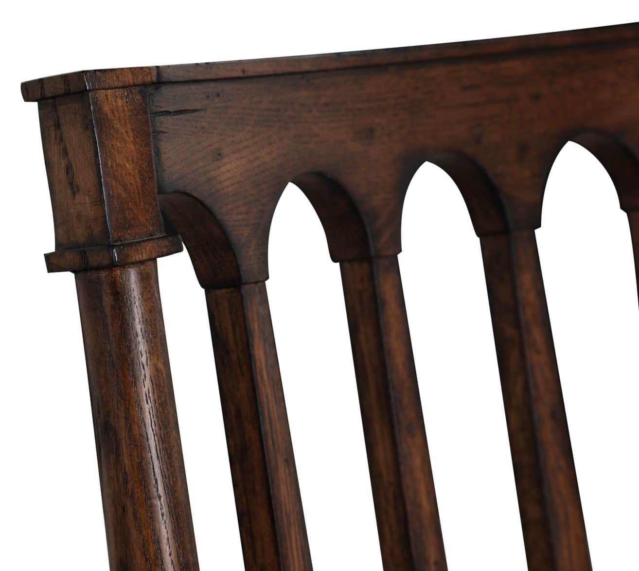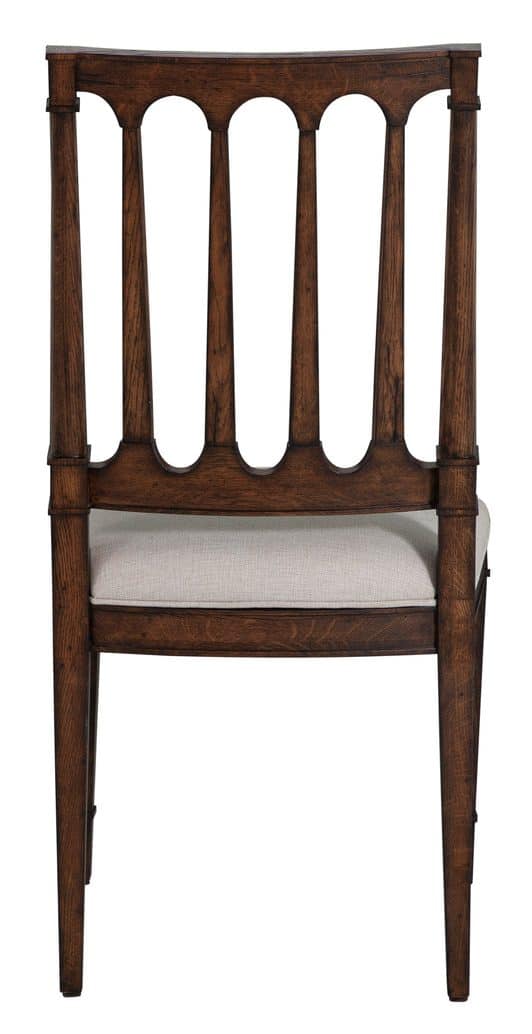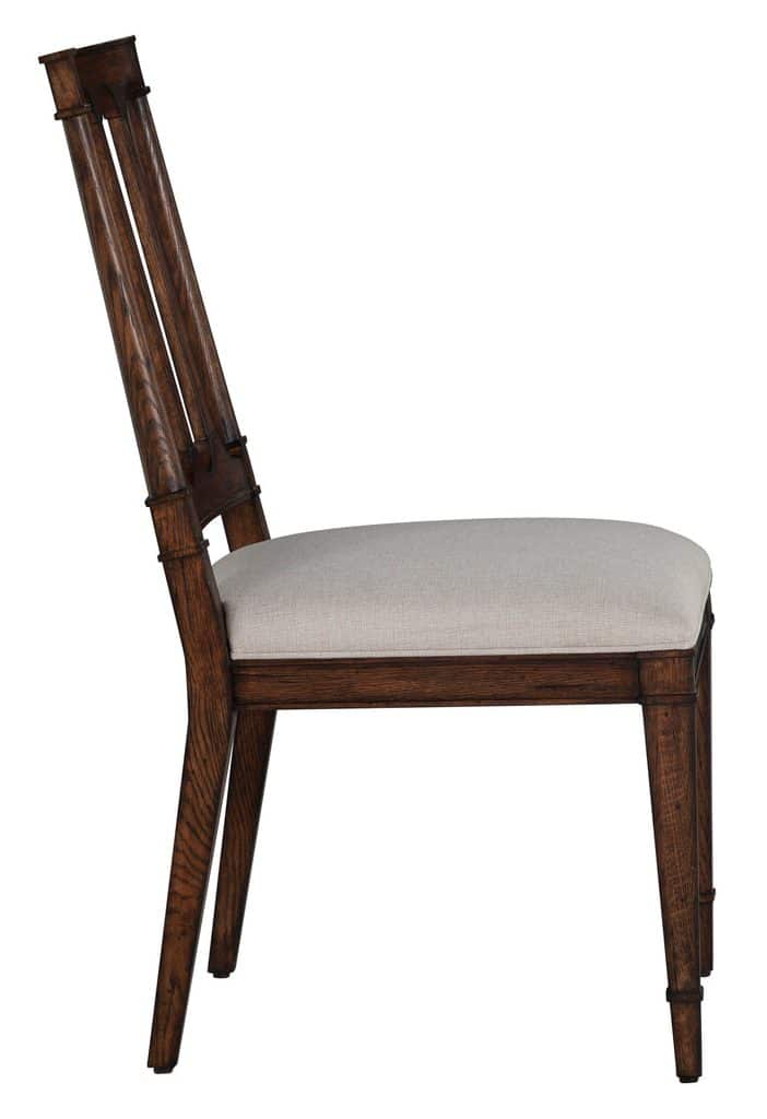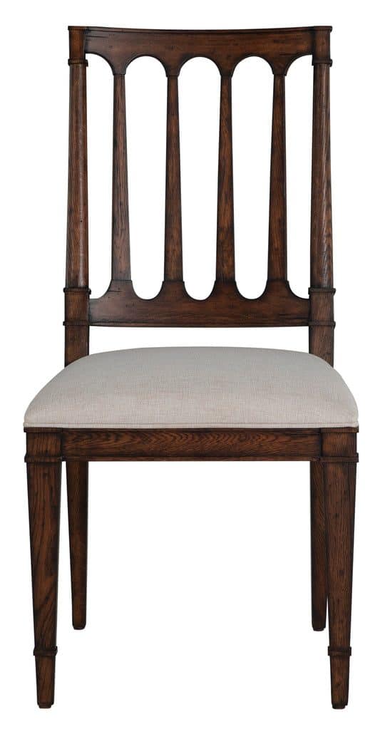 Product Description: Gabby Home SCH-175992 Mathis Wood Sculpted Back Dining Side Chair - Rustic Antique Oak - The Mathis Dining Side Chair reflects the elegance of French antique design with its refined silhouette and meticulous detailing. Crafted from oak in a warm Rustic Antique finish, its sculpted back features elongated arch cutouts that bring architectural interest and depth. Tapered, reeded legs showcase skilled craftsmanship, while the performance fabric seat provides comfort and easy maintenance, resisting spills and stains. Stylish and versatile, the Mathis Side Chair pairs beautifully with the Mathis Extension Dining Table, creating a cohesive and timeless dining ensemble.