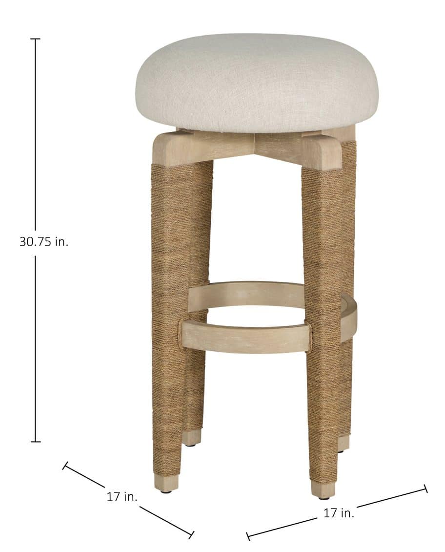 Product Description: Gabby Home SCH-176008 Maris Mahogany Swivel Bar Stool - The Maris Swivel Bar Stool blends classic craftsmanship with contemporary coastal style. Crafted from solid mahogany in a Drift finish, its elegant silhouette is enhanced by legs wrapped in eco-friendly banana leaf rope, adding a handcrafted, tactile quality. The cushioned seat, upholstered in Slipaway Ivory performance fabric, delivers both comfort and durability. With a smooth swivel mechanism and a supportive mahogany footrest, this stool combines practicality with style. Perfect for bar-height counters or open-concept spaces, the Maris Bar Stool brings natural texture and relaxed sophistication to any room.