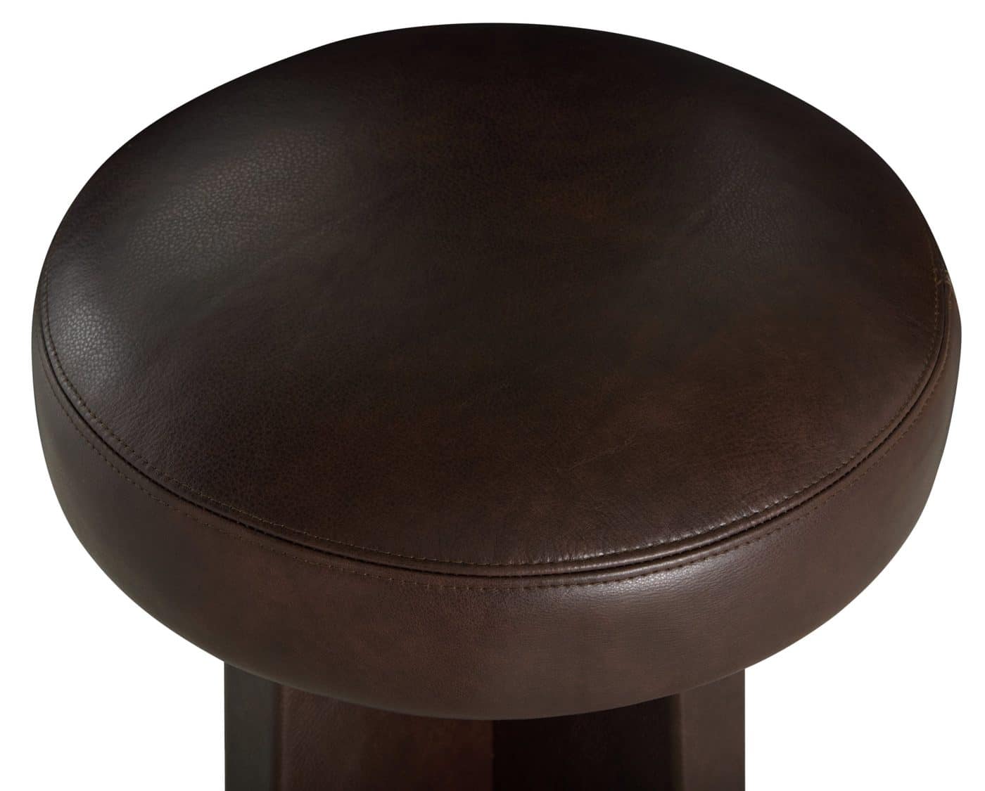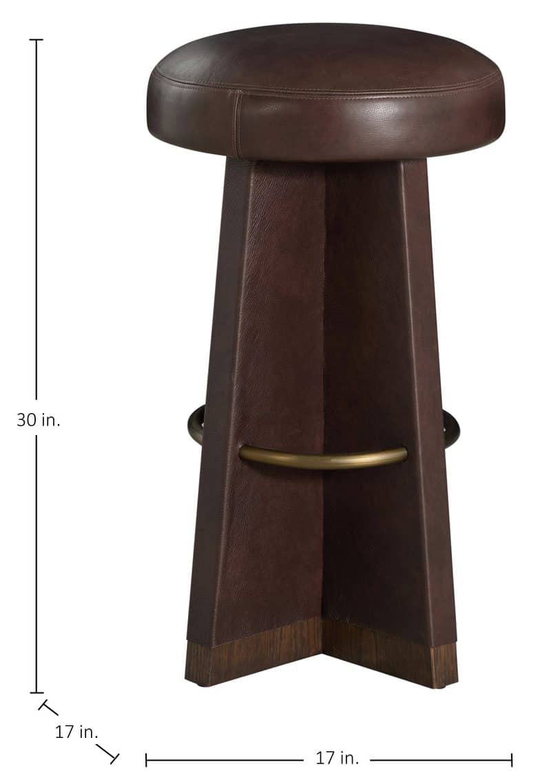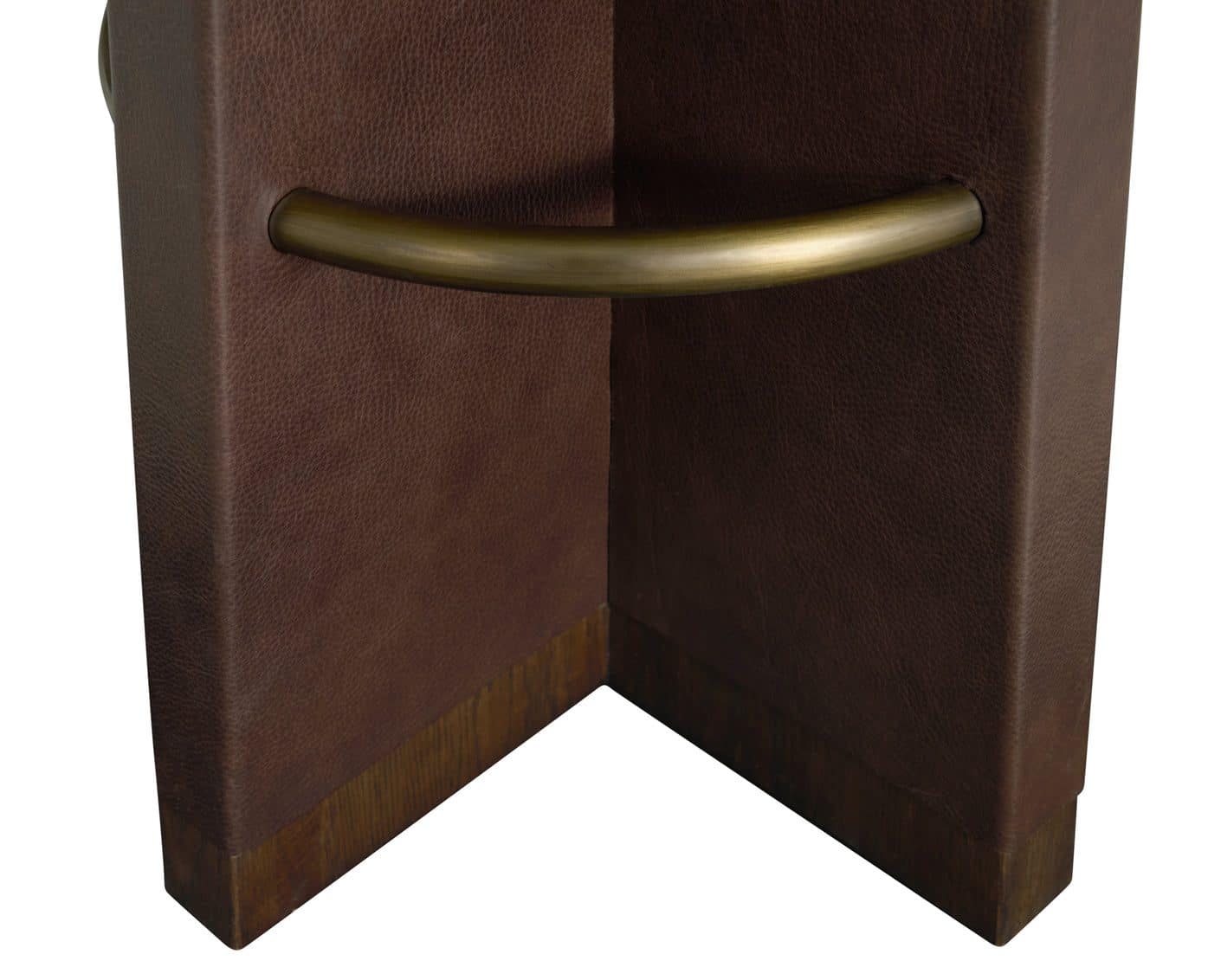Product Description: Gabby Home SCH-176010 Plateau Leather Swivel Bar Stool - Dusk - The Plateau Swivel Bar Stool in Dusk blends contemporary craftsmanship with classic luxury. Its oak frame is fully upholstered in rich top-grain Maximus Chocolate leather, offering both durability and refined appeal. Antique brass footrests and oak base accents in a Dusk finish provide practical support while adding a sophisticated, traditional touch. A plush, padded seat ensures long-lasting comfort, and the 360-degree swivel allows for easy movement and conversation. Ideal for a kitchen island or bar, the Plateau Bar Stool delivers understated elegance and everyday comfort.