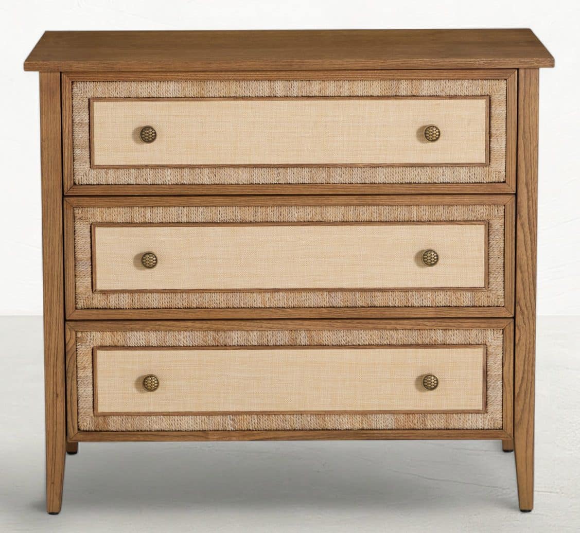 Product Description: Gabby Home SCH-176028 Grand Bermuda Sungkai Wood Chest - 3 Drawers, Sandbar - The Grand Bermuda Chest in Sandbar radiates coastal warmth and effortless sophistication. Constructed from Sungkai wood with a soft Sandbar finish, it features raffia-inspired drawer fronts framed in natural Banana Leaf Rope, adding texture and depth. Each soft-close drawer is fitted with intricately designed pulls with a raffia-like weave, bringing a hint of tropical artistry. Inspired by the harmony of indoor and outdoor living, the sun-kissed Sandbar finish enhances its organic appeal, making it ideal for creating a calm and inviting atmosphere.