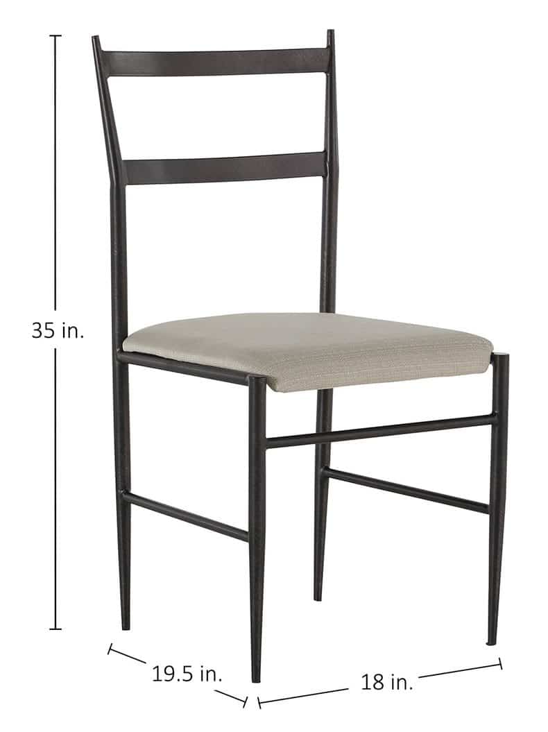 Product Description: Gabby Home SCH-240510 Ward Faux Leather Iron Tapered Legs Dining Chair - Brushed Black White - The Ward Dining Chair pairs minimalist design with durable construction, creating a refined addition to any dining area. Its slender metal frame, finished in brushed black, provides strength while keeping a light and elegant appearance. The seat, upholstered in soft linen, ensures both comfort and style. With clean lines and subtle sophistication, the Ward Dining Chair complements a wide range of interior styles, from modern to traditional.