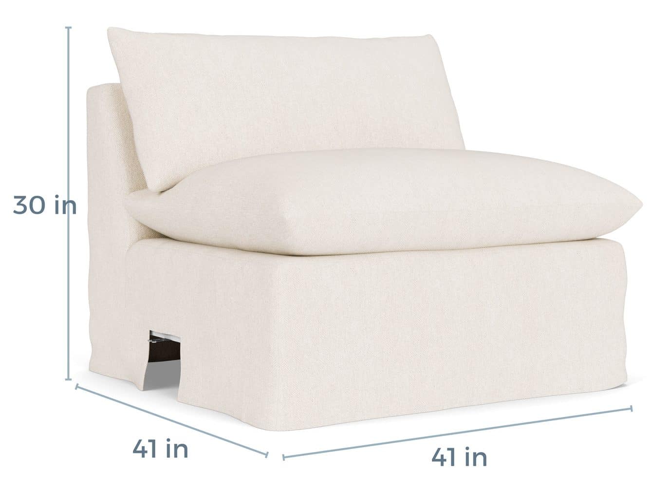 Product Description: Gabby Home SCH-963 Carrera Upholstered Sectional Chair - Armless - The Carrera Armless Chair is crafted to work effortlessly with other pieces from the Carrera collection, letting you build a custom sectional that suits your space and style. Its sleek, modern lines and plush cushions combine comfort with contemporary elegance, while the slipcovered design adds a relaxed, refined touch. Ideal for creating a cozy lounging corner or a larger entertaining area, it offers versatile functionality and stylish appeal. Explore our wide range of fabrics in-store to personalize this piece to your unique aesthetic.