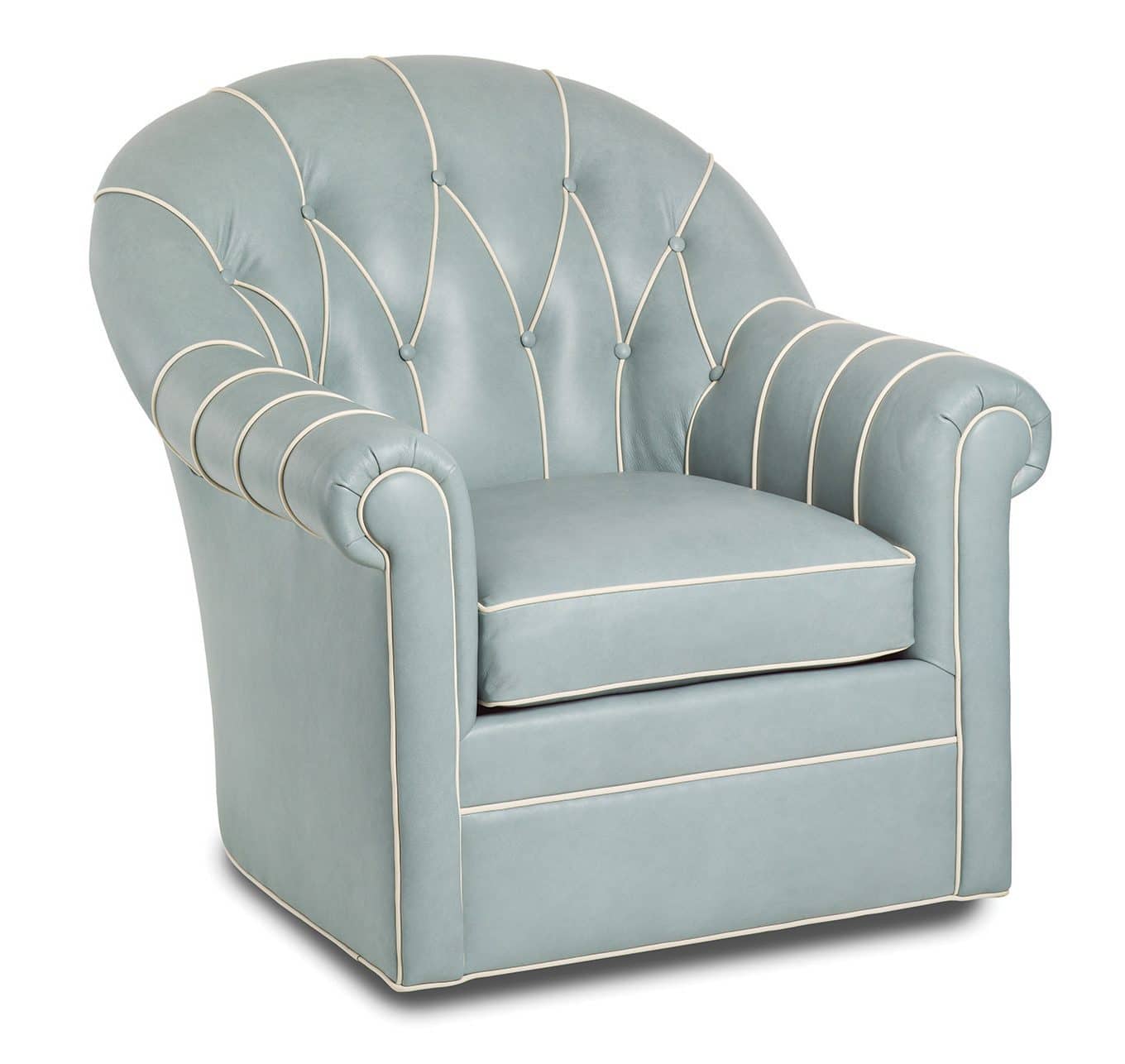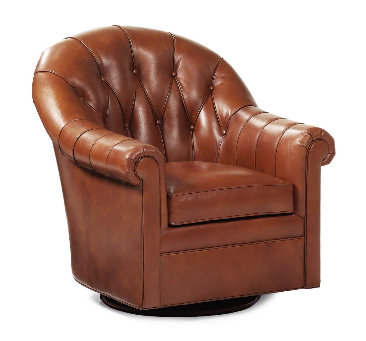 Product Description: Hancock and Moore 4703G Benson Glider - Handcrafted in North Carolina, this premium leather glider features a refined barrel-back design, elegant rolled arms, and a whisper-quiet swivel-gliding base. Engineered for both nursery comfort and sophisticated living spaces, the Benson Glider provides exceptional ergonomic support with high-resiliency cushions. Its balanced 360-degree swivel and smooth gliding motion make it a versatile centerpiece for any high-end interior.