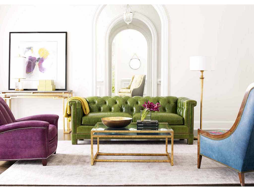 Product Description: Hancock and Moore 6477-3 Harper Tufted Leather Sofa - 1st image: Photographed in Primo Linen. Room Scene: Photographed in Tiburon Clover