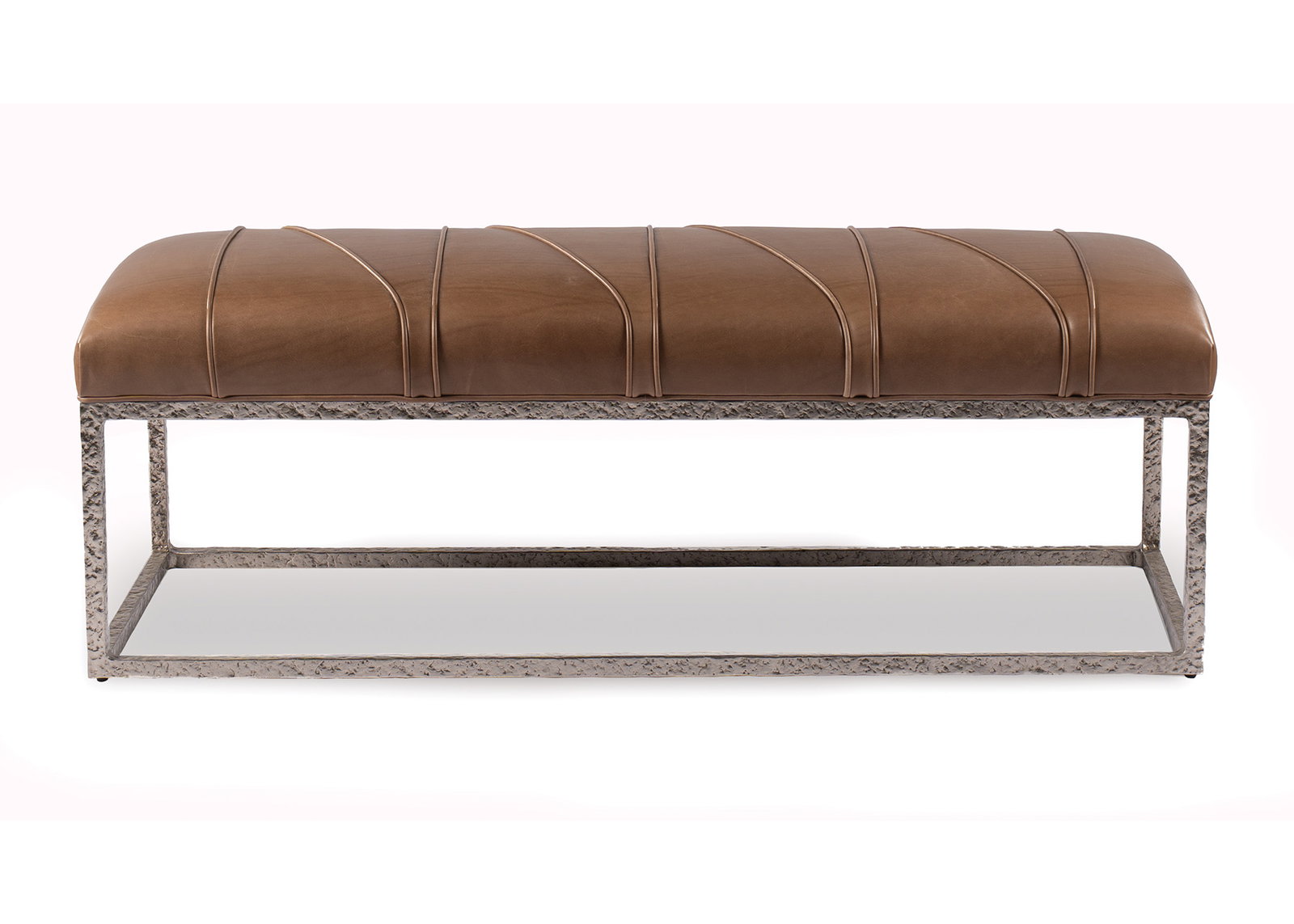 Product Description: Hancock and Moore 6931-WS Tuxedo Bench with Welt Stitch - Tuxedo is a moderately scaled bench with a forged metal base and a unique welted stitching pattern to the top that is reminiscent of the delicate back and forth swirl design that is found on the top of a tuxedo cake.