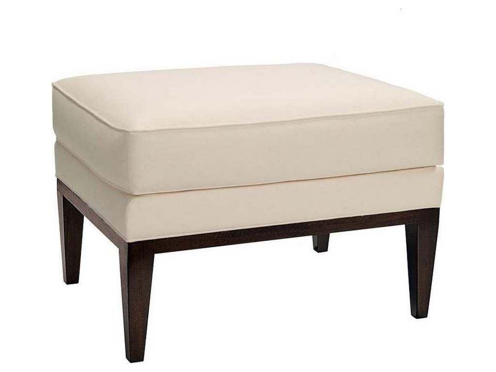 Product Description: Hickory Chair HC114-29 Elliott Ottoman - The Elliott Ottoman is a companion to the elegant Elliott Wing Chair. Its crisply tailored upholstered top sits upon a mahogany base with finely tapered legs. Shown in standard Dark Walnut finish.