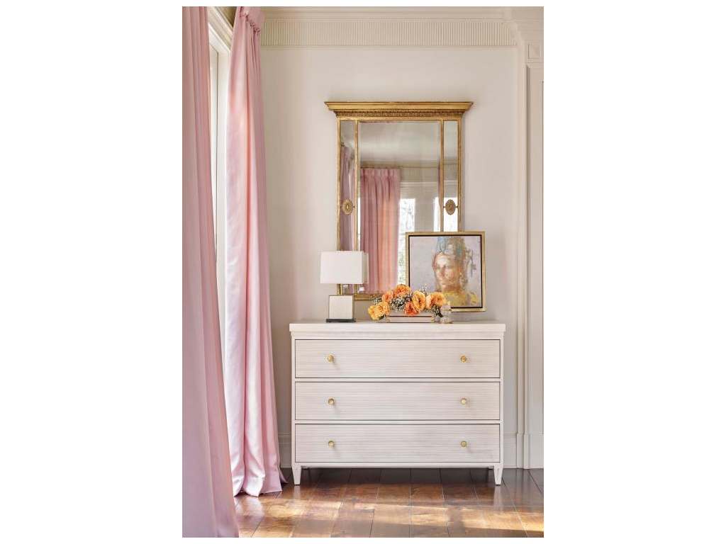Product Description: Hickory Chair HC1372-70 St Claire Chest - The St. Claire Chest is an elegant form designed for personalization. It has reeded drawer fronts with Soft Brass hardware as standard. Light Walnut is the standard finish.
