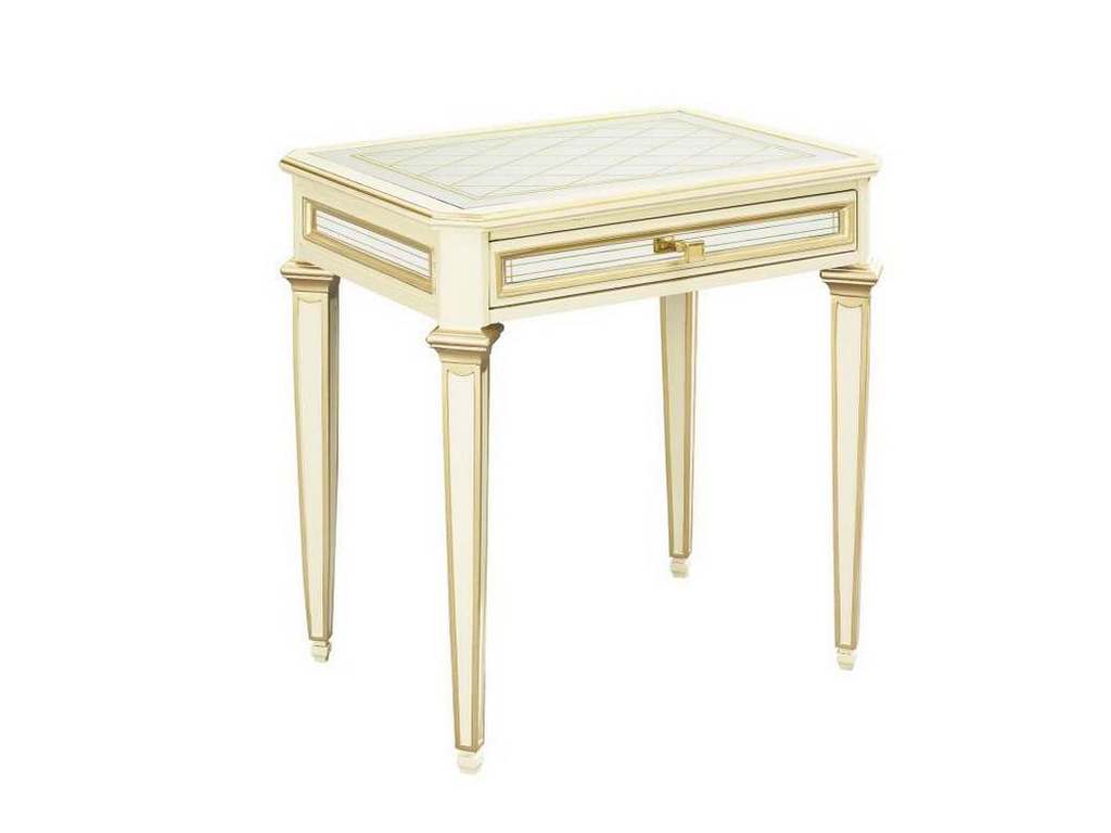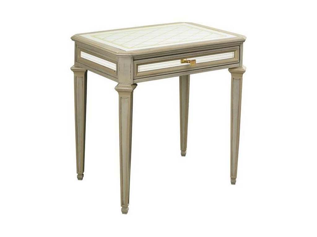 Product Description: Hickory Chair HC1585-70 Suzanne Kasler Antoinette Side Table - The diminutive Antoinette Side Table is among Suzanne Kasler's favorite finds from the Paris flea market. The rich carving, tapered legs and mirrored insets make for a beautiful accent piece. The French Regency originals are a distressed white painted finish with silvery mirror details and gilt striping. This version is available in all Hickory Chair finishes and features hand-painted striping on the mirrored sides and lattice decoration on the top. Special Decoration pattern available in any Hickory Chair striping color and technique on any Alternative or Premium finish as 1585-40.