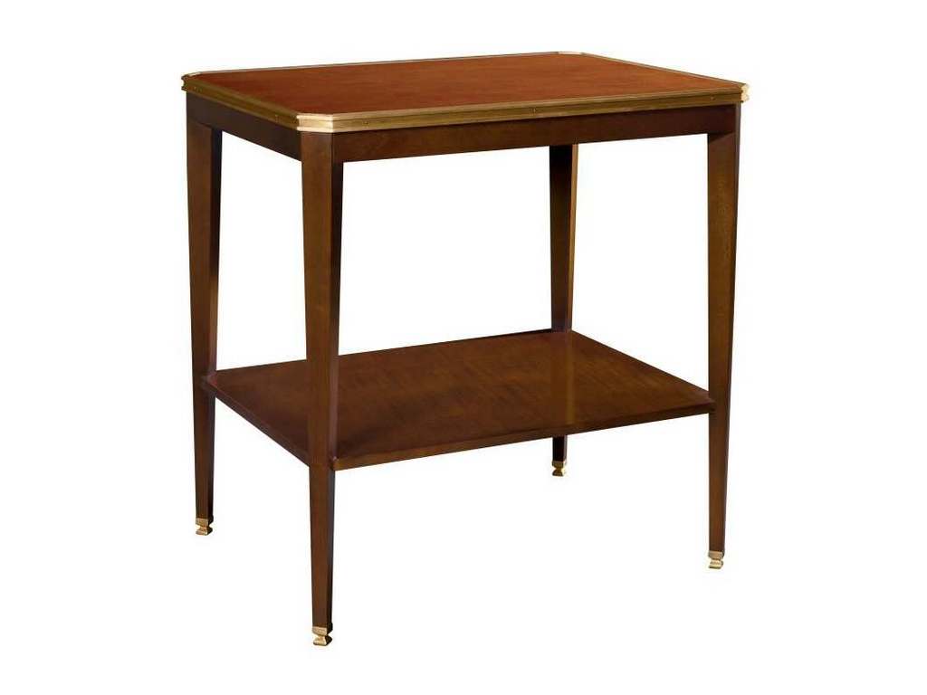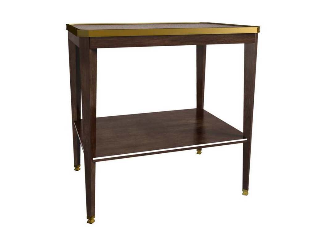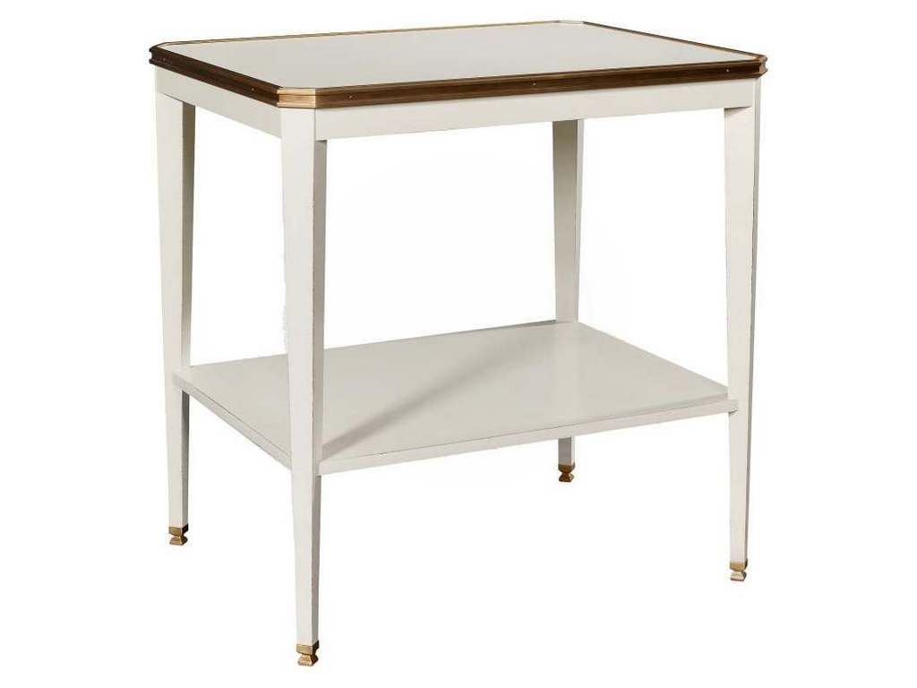 Product Description: Hickory Chair HC1586-71W Austell Side Table With Wood Top - Adapted from an antique table in Suzanne's personal collection, the Austell Side Table is crafted in richly grained mahogany solids with a choice of either white onyx stone (HC1586-10S). The Austell Side Table features a wood shelf and a French Brass rim surrounding the top and slender tapered posts capped with matching brass ferrules. French Brass trim and ferrules standard. Light Walnut is the standard finish. Optional Dark walnut finish shown.