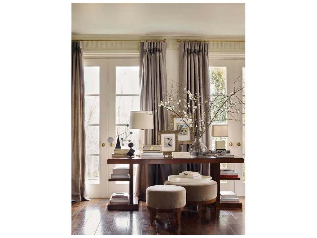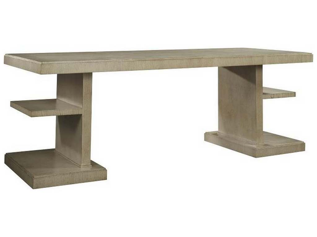Product Description: Hickory Chair HC1637-70 Dalton Library Table - This table was inspired by a unique table Suzanne found in a French Modern villa in Africa. Like the original, the Dalton has a long, spacious top with cantilevered shelves and a plinth base on both ends. Crafted in ash solids with quartered ash veneers. Light Walnut is the standard finish.