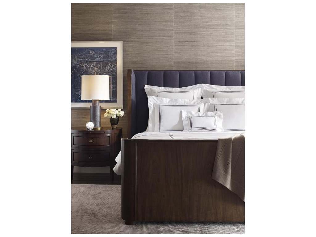 Product Description: Hickory Chair HC3455-10 Laucala Channeled Upholstered Bed King - The Laucala Bed is a dreamy oasis of rich walnut veneer paired with striking upholstery channels on the inner headboard. Well-suited for modern and more traditional interiors, the Laucala Bed is beautiful from every direction, whether tucked into a corner or floating in the center of a space. Available in Queen, King, and California King. Truffle is the standard finish as shown.
