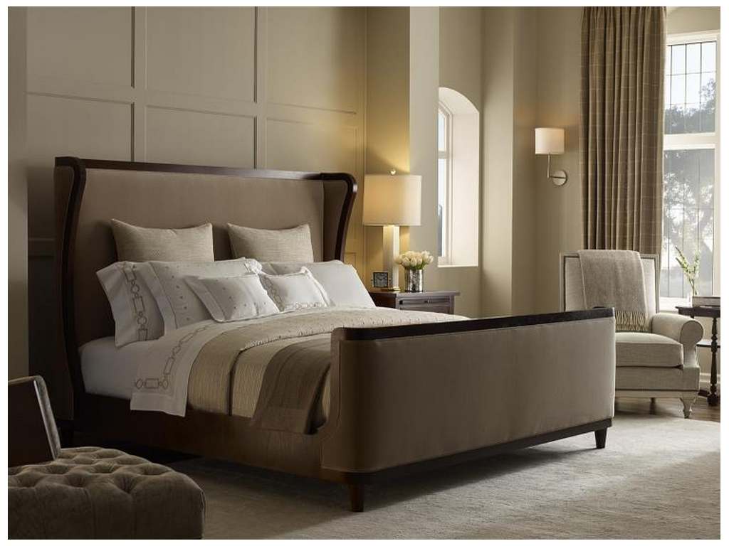 Product Description: Hickory Chair HC3462-10 Cliveden Bed King - This romantic sleigh bed has the appeal of a sheltering wingback with dramatic presence. The perfect balance of upholstery and dark walnut, the refined Cliveden Bed will stand the test of time. Available in Queen, King, and California King. Truffle is the standard finish. Optional Dark Walnut finish is shown.