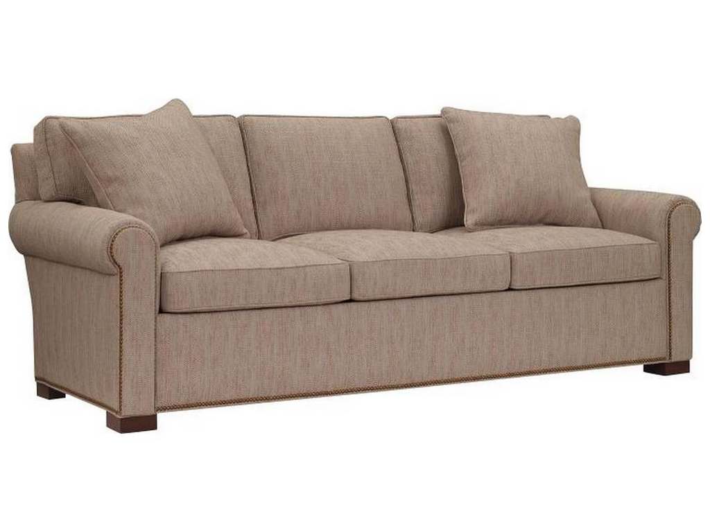 Product Description: Hickory Chair HC4121-07 Silhouettes Raised Panel Lawson Arm Sleep Sofa - The Silhouettes Upholstery Program allowed this Sleep Sofa to be made to order. It features Raised Panel Arms, Square seat cushions, Box back cushions, a pair of goose feather throw pillows, 202 Legs finished in Kohl finish and was finished in optional NS-00 nail head trim. At standard depth 39" overall depth with sleeper open is 92". Standard 3-piece Spring-Down seat cushion 3-piece Blend-Down back cushions. It is standard with a Queen size Air Dream mattress and an exclusive tri-fold mechanism.