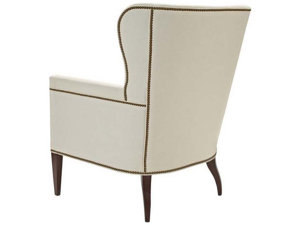 Product Description: Hickory Chair HC6409-55 Samuel Wing Chair - Interpreted from a 19th Century image from an English furniture catalog printed in London by G. Taylor between 1830-1850. The catalog is part of the extensive library at the Winterthur Museum. The barrel-back chair that inspired the Samuel Wing Chair appeared in print as early as 1803. The Samuel Wing chair features narrow, square capped arms, a perfectly contoured back with small, shapely wings and slender tapered front posts with splayed back legs. A Spring-Down seat cushion and nail head trim are standard. Standard in Espresso finish and NS-08 Old Brass nail head trim.