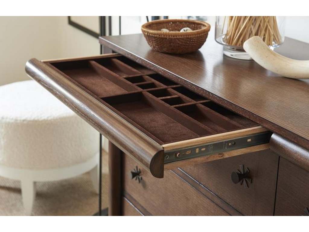 Product Description: Hickory Chair HC6467-70 Marguerite Dresser - Hickory Chair Company's artists have adapted a 19th-century image from Ackermann's series in the creation of this dresser. The result is a piece of furniture that is certain to become an important part of today's living environments that emphasize unparalleled quality and beauty. Six regular drawers and two Hidden push-latch top drawers with felt lined compartments standard. Ebony Bronze hardware standard. Dark Walnut is the standard finish.