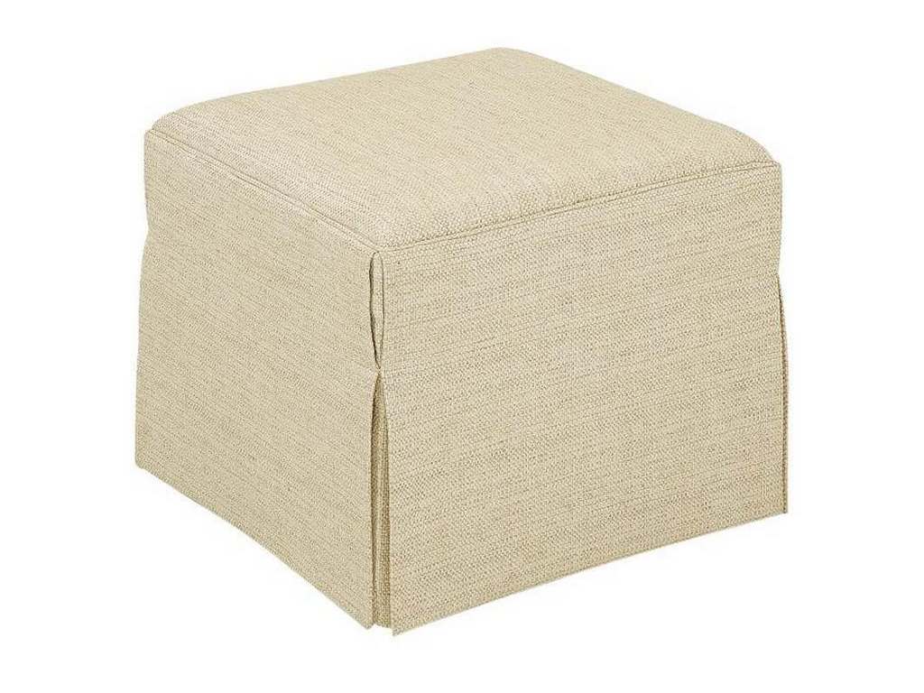 Product Description: Hickory Chair HC7168-53 Cocktail Ottoman Made To Measure - This elegantly simple cocktail ottoman with a dressmaker skirt adds softness to any room. Made as a standard size or as M2M Made To Measure, this simple cocktail ottoman is a true classic. Shown to the right with spaced nail head trim and a contrasting fabric on the top as a special construction.