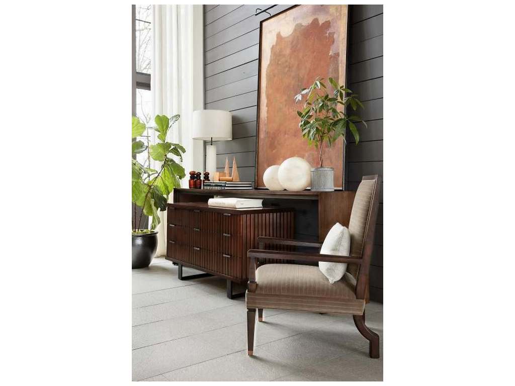 Collection Description: The Ray Booth Collection is the marriage of diverse materials such as beautiful hand-forged metal work and rich woods. Ray's background in architecture and interior designs is manifested beautifully in this collection blending classic and modern forms that will stand the test of time. From drinks to dining tables, handsome materials are applied to forms that allow for different heights, multiple functions, and sizes. The modern upholstery joins hand crafted domestically made metal bases with luxuriously comfortable modern upholstery. Couture-like detailing such as blind biscuit-tufting, subtle weltless trim on throw pillows and cushions as well as finely tailored top-stitching along the edge of an arm adds crispness to the upholstery