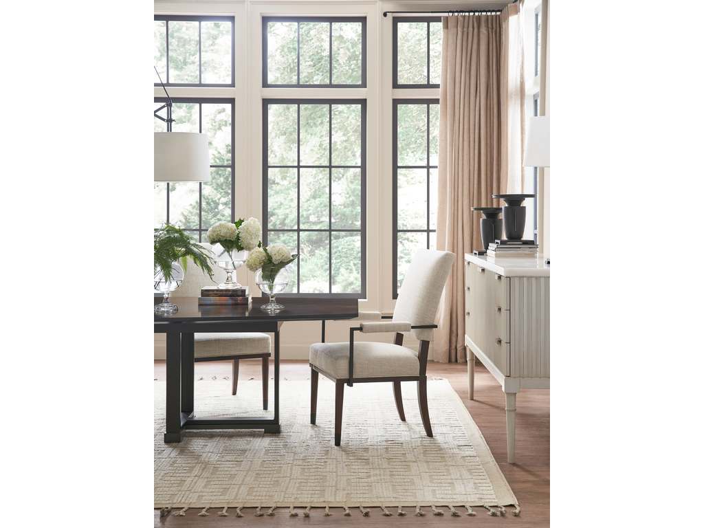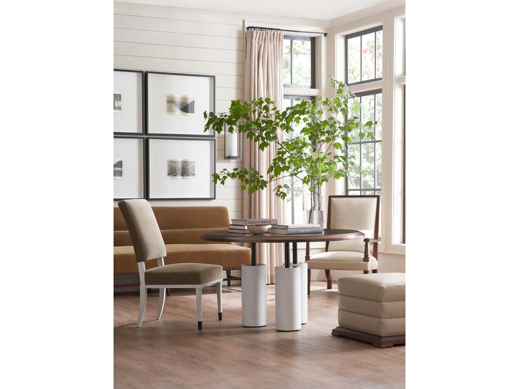 Collection Description: The Ray Booth Collection is the marriage of diverse materials such as beautiful hand-forged metal work and rich woods. Ray's background in architecture and interior designs is manifested beautifully in this collection blending classic and modern forms that will stand the test of time. From drinks to dining tables, handsome materials are applied to forms that allow for different heights, multiple functions, and sizes. The modern upholstery joins hand crafted domestically made metal bases with luxuriously comfortable modern upholstery. Couture-like detailing such as blind biscuit-tufting, subtle weltless trim on throw pillows and cushions as well as finely tailored top-stitching along the edge of an arm adds crispness to the upholstery