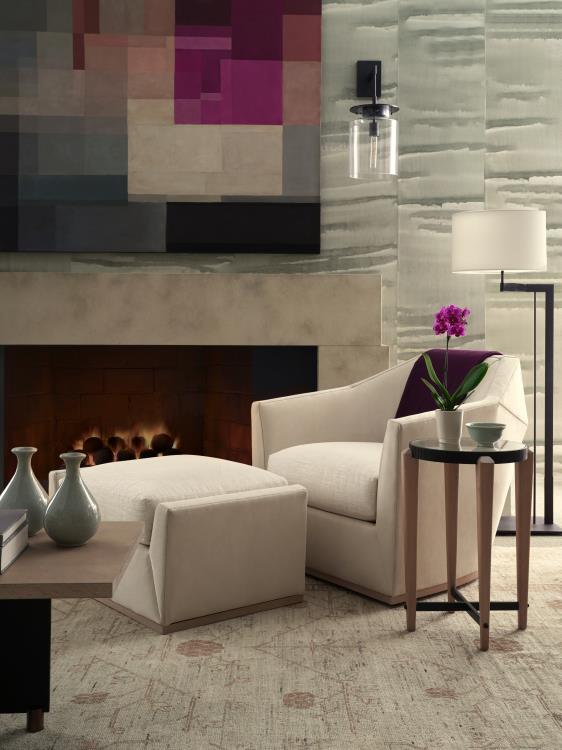 Collection Description: The Ray Booth Collection is the marriage of diverse materials such as beautiful hand-forged metal work and rich woods. Ray's background in architecture and interior designs is manifested beautifully in this collection blending classic and modern forms that will stand the test of time. From drinks to dining tables, handsome materials are applied to forms that allow for different heights, multiple functions, and sizes. The modern upholstery joins hand crafted domestically made metal bases with luxuriously comfortable modern upholstery. Couture-like detailing such as blind biscuit-tufting, subtle weltless trim on throw pillows and cushions as well as finely tailored top-stitching along the edge of an arm adds crispness to the upholstery
