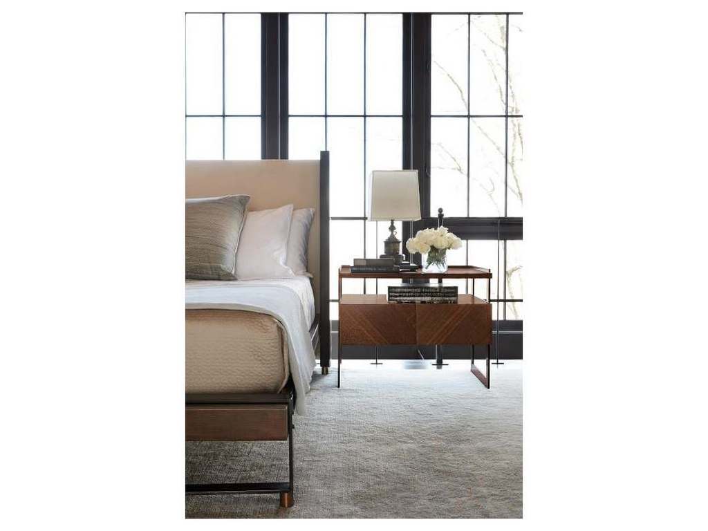 Product Description: Hickory Chair HC7286-70 Barstock Side Table - The steel legs allow this table a planar expression of strength and grace. A diagonally matched walnut veneer top cantilevers over a single drawer, with open shelves hovering between. Truffle with Browned Steel base is the standard finish as shown. Drawer with Blum Blumotion soft-close guides standard. Optional finishes not available on metal.