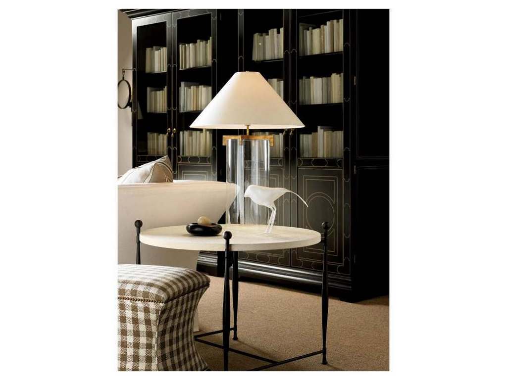 Product Description: Hickory Chair HC785-80RS Ionia Side Table With Round Stone Top - Classically inspired with contemporary influences, the Ionia Side Table is available with wood or stone top and is characterized by distinct legs featuring a fluid, reverse-hourglass shape. Each leg is accented with rounded finials, with slender stretchers connecting the Wrought Iron base. The round stone top is Honed San Giorgio Limestone with brushed edges. All natural stone will have variation in color and texture.