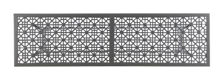 Product Description: Hickory Chair HCD8946-G-STK Haret Console Smoke Grey - The Haret Outdoor Console offers a stylish and versatile solution for casual outdoor living. Showcasing the signature fretwork of the Haret series on both the top and base stretcher, this console beautifully complements the Haret dining table as a serving surface or functions as an accent piece on a covered lanai. Designed for multi-functional use, the console is available in two finishes: Cloud White and Smoke Grey. A custom-fitted outdoor protective cover is also available and sold separately (HCD8946-PC).