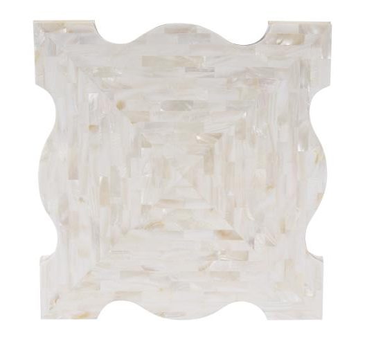Product Description: Hickory Chair HCP6486-STK Marie Spot Table White Kabebe - Boasts a spot table design with a white Kabebe top. Features a metal base with a sleek finish. Perfect for adding a touch of elegance to any room.