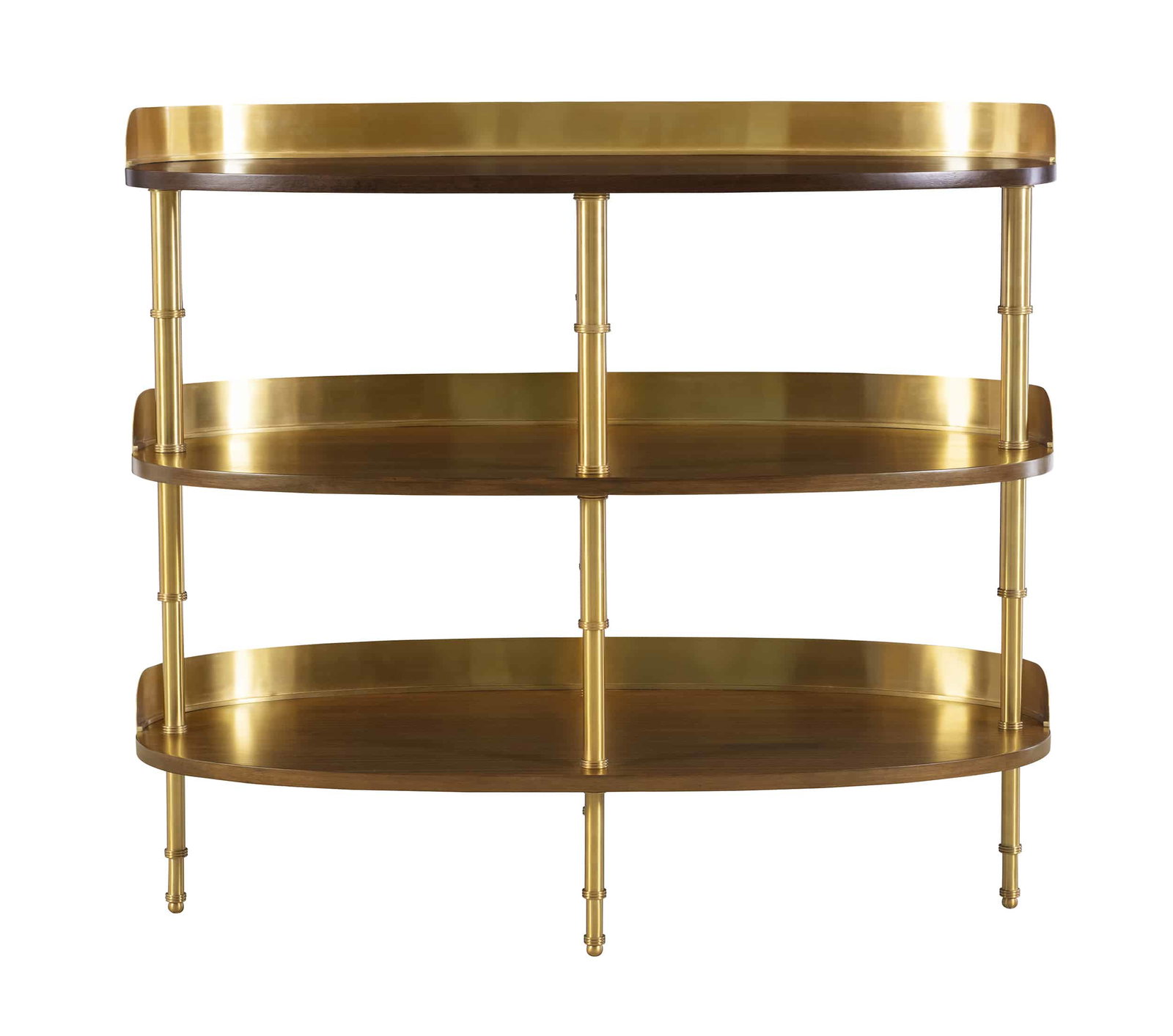 Product Description: Hickory Chair HCP9004-STK Ellipse Bar - A striking balance of refinement and texture, this bar pays homage to Mariette Himes Gomez’s original design. The frame is elevated with a brass gallery and distinctive brass bamboo uprights, lending a touch of jewelry-like detail and architectural rhythm. Warm walnut shelves, finished in a rich truffle stain, provide both function and depth, offering a luxurious stage for display and storage. Elegant and timeless, this piece embodies Gomez’s legacy of sophisticated restraint and modern classicism.