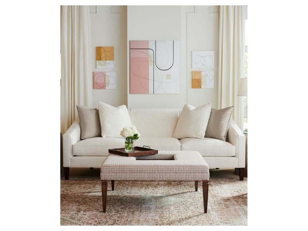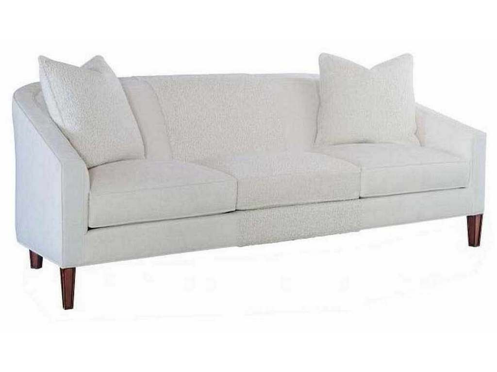Product Description: Hickory Chair PE6719-30 Harper Sofa - The Harper Sofa was designed by Kim Scodro. It is the perfect addition to a family room or living space. It's comfortable and utterly stylish. The elegantly curved back enhances its splendor. It sits upon elegantly tapered posts. This three seat cushion, tight back sofa with its gently sloping track arms is generously scaled. The Harper is standard with two goose feather and down throw pillows. Truffle finish is standard.