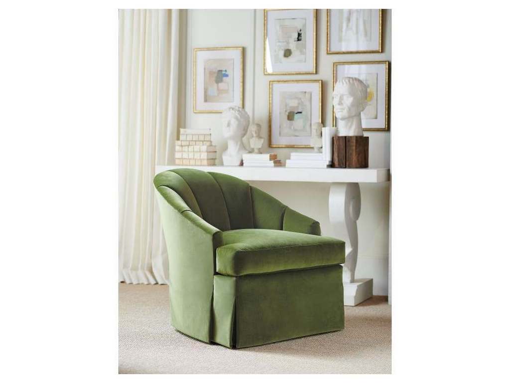 Product Description: Hickory Chair PE6739-00 Liam Swivel Chair - The Liam Swivel Chair and its companions, the Liam Lounge Chair and the Liam Skirted Lounge Chair by Kim Scodro provide combine comfort and style. iThe silhouette of the Liam Chair resembles the Queen Anne style shell motif. The Liam is a stunning and playful piece available two ways; with a window-paned leg or as a skirted swivel chair.