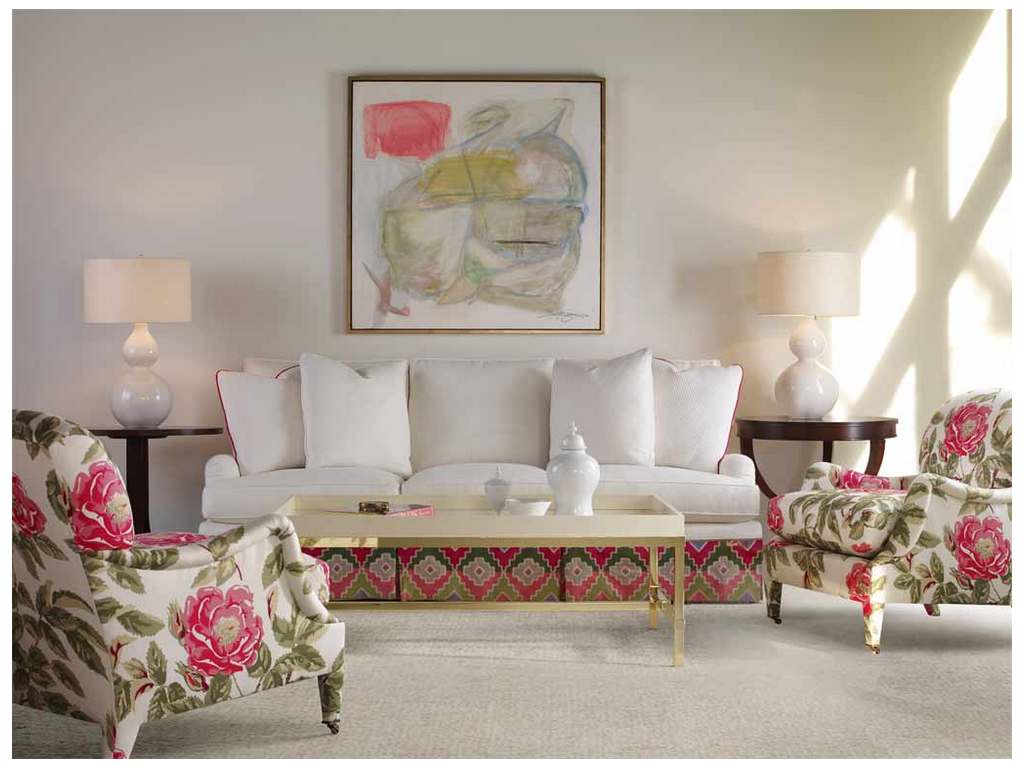Product Description: Highland House 1541-89 Sills Skirted Sofa - Skirted sofa with a classic look and comfortable cushions. Upholstered in soft fabric for a cozy feel. Perfect for lounging or entertaining guests.