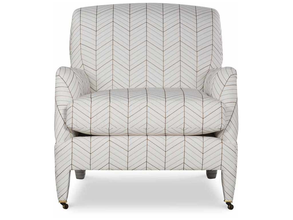 Product Description: Highland House 1553 Dorset Fully Upholstered Chair - The silhouette of the frame was inspired by an English Antique. We modified the shape of the traditional English arm and upholstered the legs to give the piece a more modern sensibility. Standard with Topstitch on Cushions and In-Back. No Welt. Standard Antique Brass Casters and OPT Satin Nickel Casters