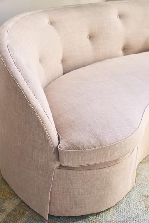Product Description: Highland House 2811-90 Lottie Skirted Sofa - Upholstered in a skirted design with plush cushions for comfort. Features a classic silhouette and sturdy construction for lasting quality. Ideal for elegant living rooms.