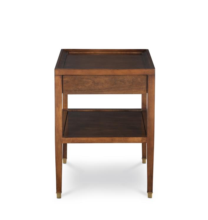 Product Description: Highland House HH19-876E-1 Curren Side Table - Ferrules - Standard with Antique Brass and OPT Antique Silver Ferrules. Standard with drawer (finger pull) no hardware.