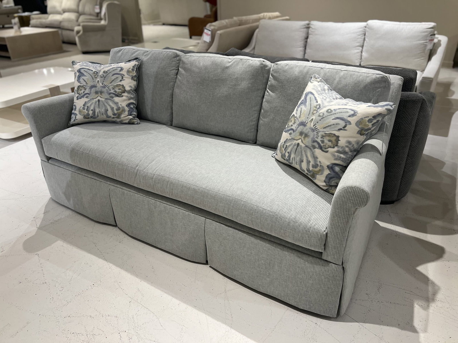 The Jessica Charles Furniture Ensemble Skirted Sofa (SKU: 1790S/10500) is available at Factory Outlets by Hickory Park in Hickory, North Carolina.