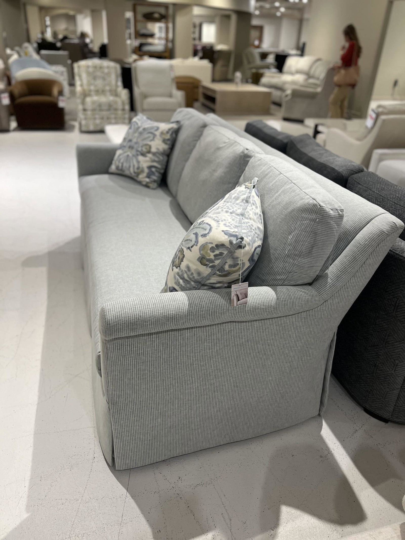 Jessica Charles, located in High Point, NC, is known for creating beautifully upholstered accent chairs, each with its own unique character. Their love of style and commitment to comfortable living shine through every step of their design and craftsmanship. Every piece is handcrafted by skilled North Carolina artisans using time-honored methods like eight-way hand-tied springs and hand-cut, hand-sewn upholstery. Cushions are tailored to fit each frame precisely, while skirts are carefully cut, lined, and mitered to achieve a perfect, elegant drape. — At Hickory Furniture Mart