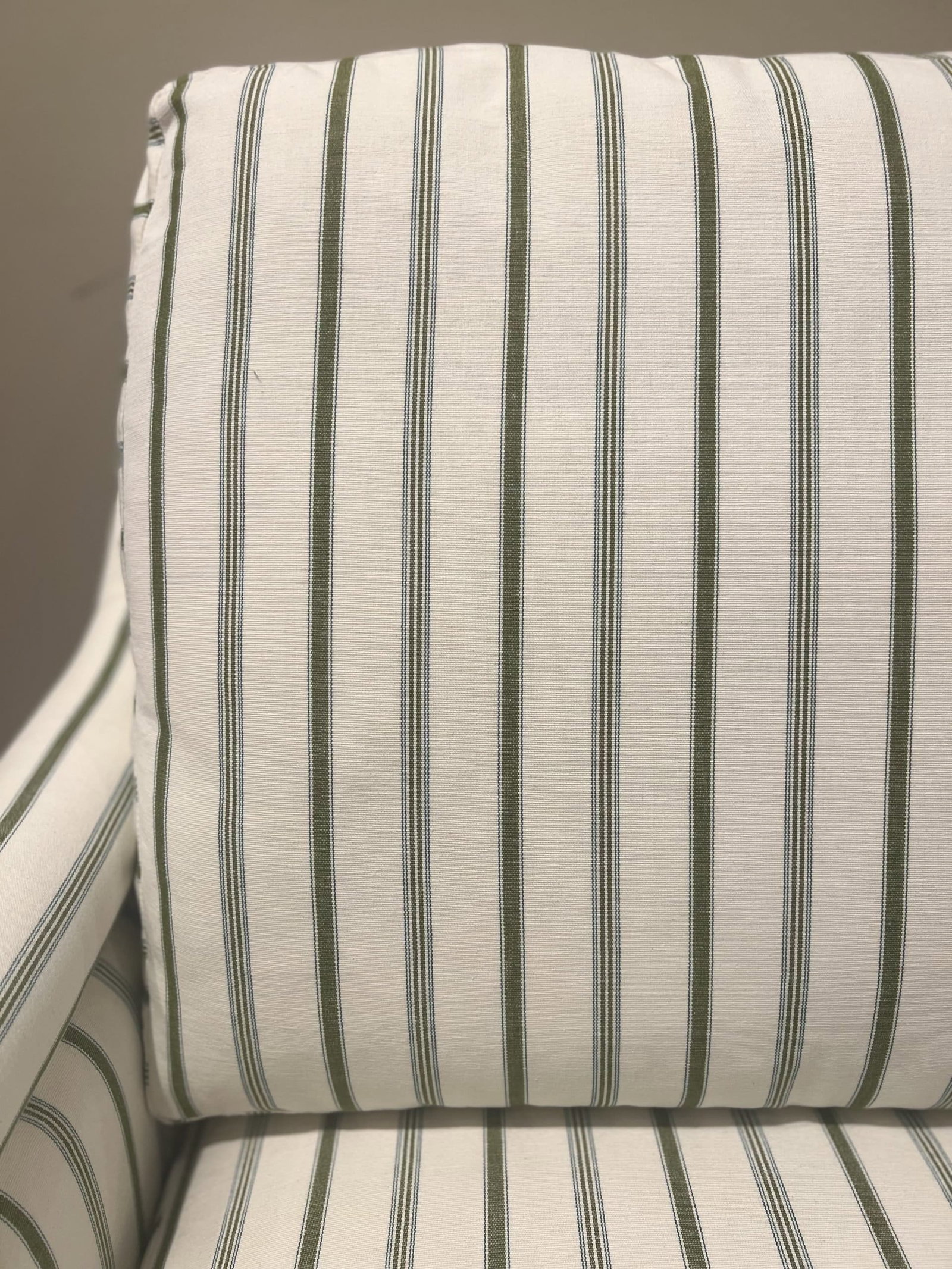 Jessica Charles, located in High Point, NC, is known for creating beautifully upholstered accent chairs, each with its own unique character. Their love of style and commitment to comfortable living shine through every step of their design and craftsmanship. Every piece is handcrafted by skilled North Carolina artisans using time-honored methods like eight-way hand-tied springs and hand-cut, hand-sewn upholstery. Cushions are tailored to fit each frame precisely, while skirts are carefully cut, lined, and mitered to achieve a perfect, elegant drape. — At Hickory Furniture Mart