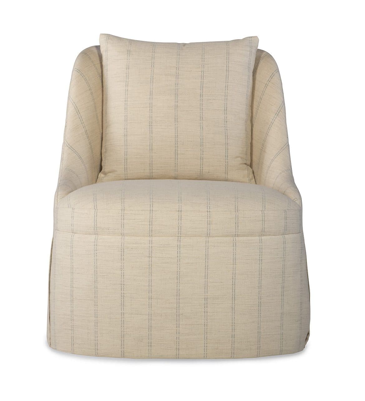 Product Description: Jessica Charles 5376SK-S Camille Skirted Swivel Chair - The Camille features a graceful, curved back and tailored silhouette that blends comfort with sophistication. Its smooth, seamless design offers effortless style and versatility for any space.