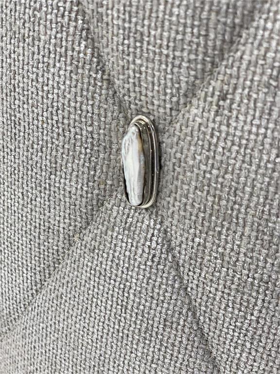 Product Description: John Richard AMF-1664-4065-AS Diamond Ottoman - This upholstered ottoman has a wood plinth base. It is accented with mother-of-pearl buttons and polished nickel nailheads.