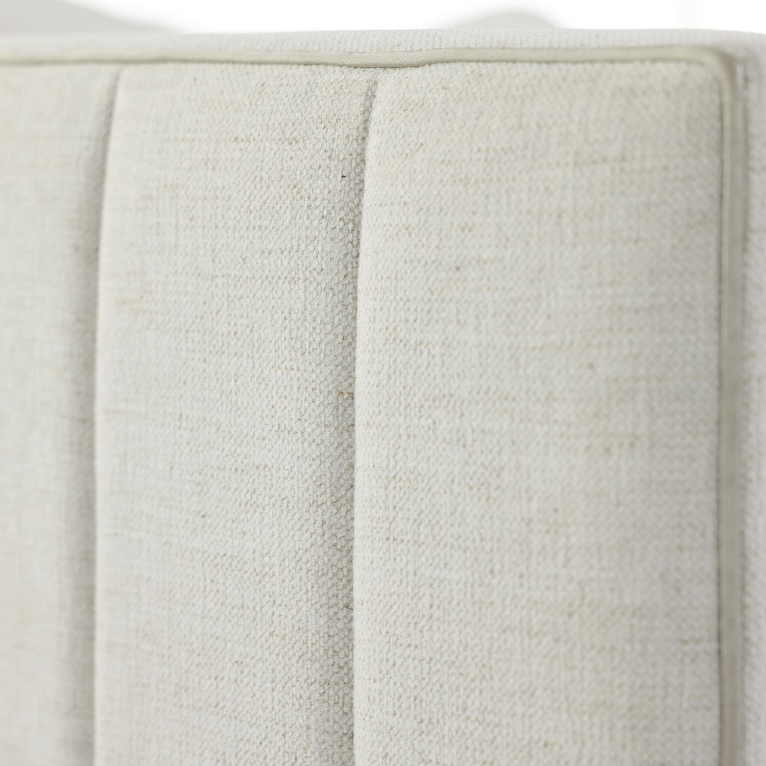 Product Description: John Richard AMF-1728-1109-AS Giacosa Swivel Club Chair - The Giacosa Swivel Chair is a stunning piece that features a memory swivel and a curved beech wood frame. The piece is upholstered in Nomad Snow 1109 fabric, for a crisp white look. Channel quilting spans the interior and exterior, accented by small welt trim in Gimlet String 1120. A lovely accent pillow is included as a backrest, completing the look.
