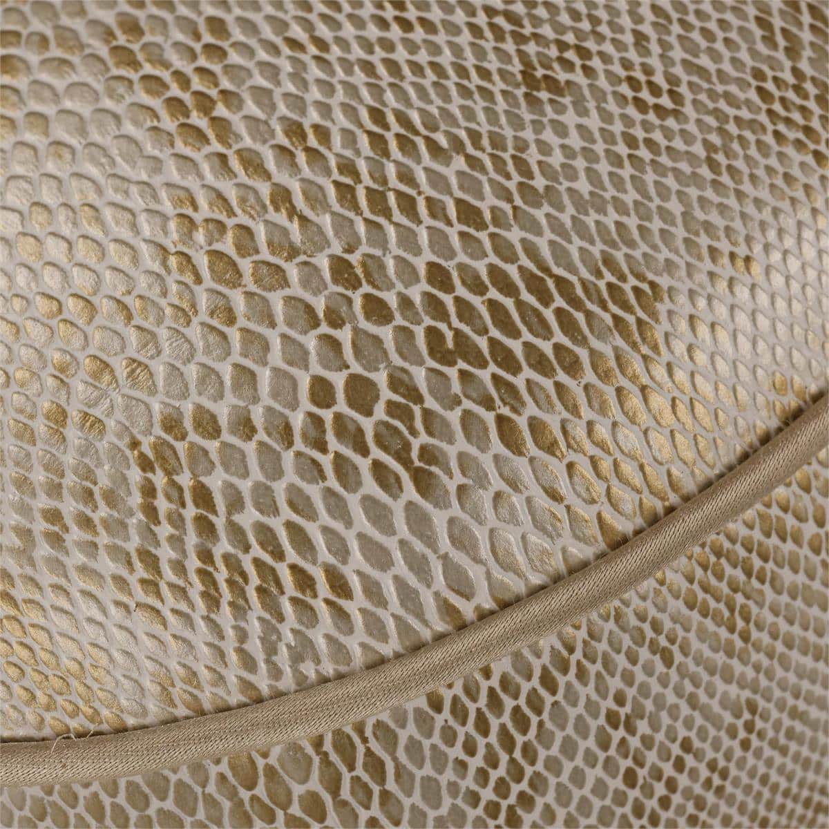 Product Description: John Richard AMQ-1218-2241 Mariposa Small Ottoman - 2241 - The Mariposa Small Ottoman is a butterfly-shaped statement piece crafted from acacia wood. Shown in Faux Snakeskin 2241 fabric, the ottoman features a tight seat with a welt trim in Gimlet Sand 1116 on the top and bottom edges.
