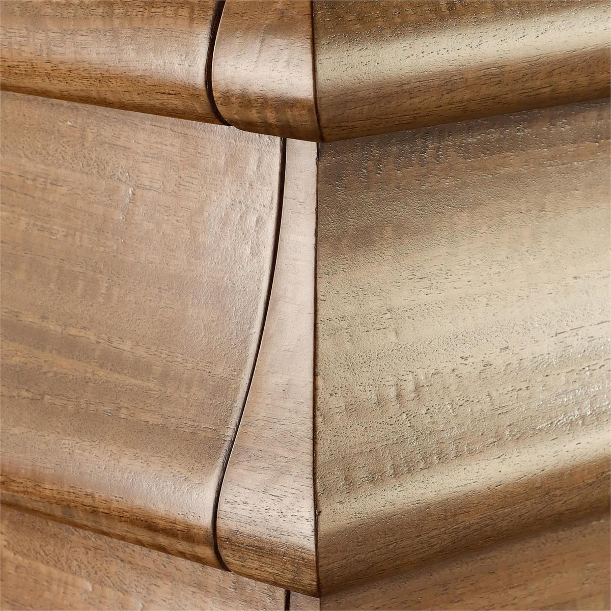 Product Description: John Richard EUR-01-0556 Montano Twelve-Drawer Dresser - The Montano Twelve-Drawer Dresser is an elegant design that harmonizes rustic tones with contemporary forms. Crafted from eucalyptus wood in a Monteverde finish, the piece showcases a warm, rich brown tone that enhances its natural beauty and brings a grounded, inviting presence to any space. Its stylish silhouette features tapered ridges with rounded edges, giving it a distinguished yet delicate presence. This dresser includes twelve drawers, with interiors featuring oak wood in a natural finish.
